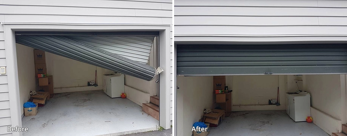 Track realignment and roller replacement prevents further damage. It restores safe and smooth door operation.
